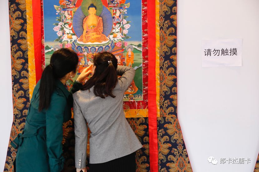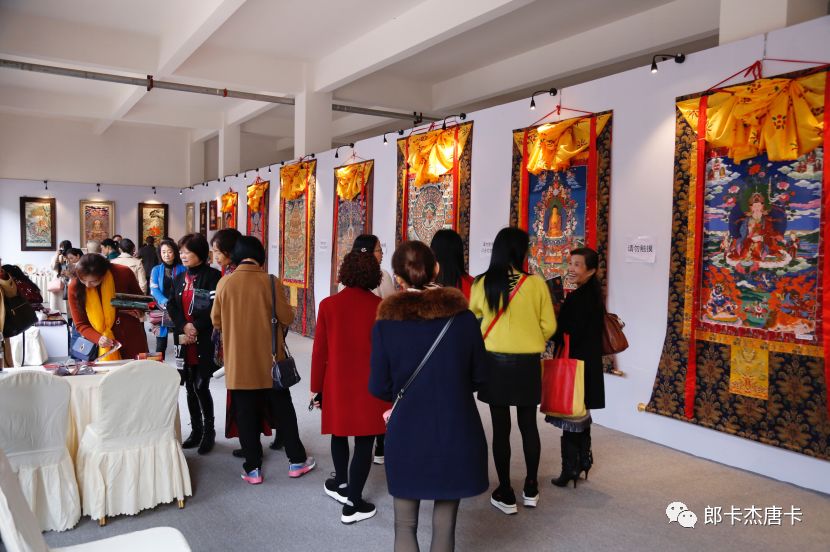 这次展览送展的唐卡均为郎卡杰画院的创作精品,也在展览现场吸引了众多观众前来观展。